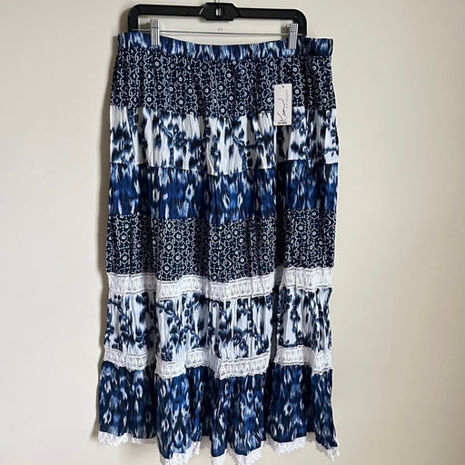 PanacheProse Kim Rogers Women’s 100% Cotton Lace Insert Unlined Elastic Waist Midi Skirt XL