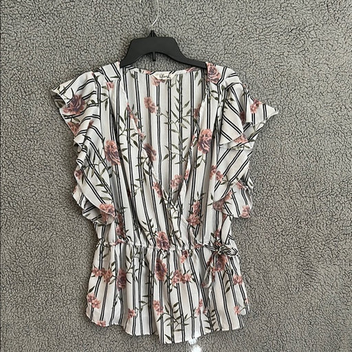 View full detailsPre - Loved Blush Floral Striped Ruffle Sleeve Blouse