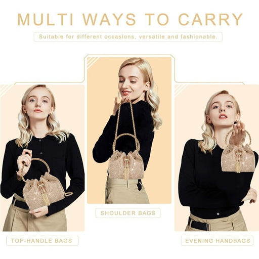 New Women's Sliver Bucket Shining Shoulder Bag Rhinestones