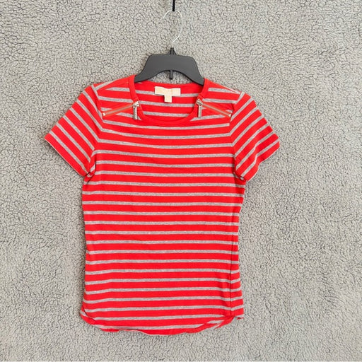 Michael Michael Kors Red and White Striped Blouse with Zipper Detail