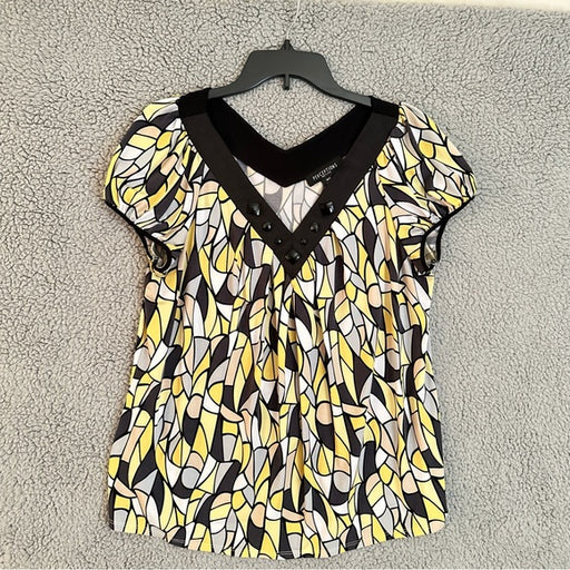 Perceptions Women's Yellow and Black Patterned Blouse