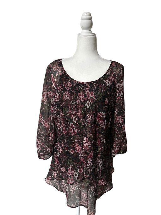 View full detailsRoz & Ali Burgundy Sheer Floral Women’s Blouse – Size XL |Lined